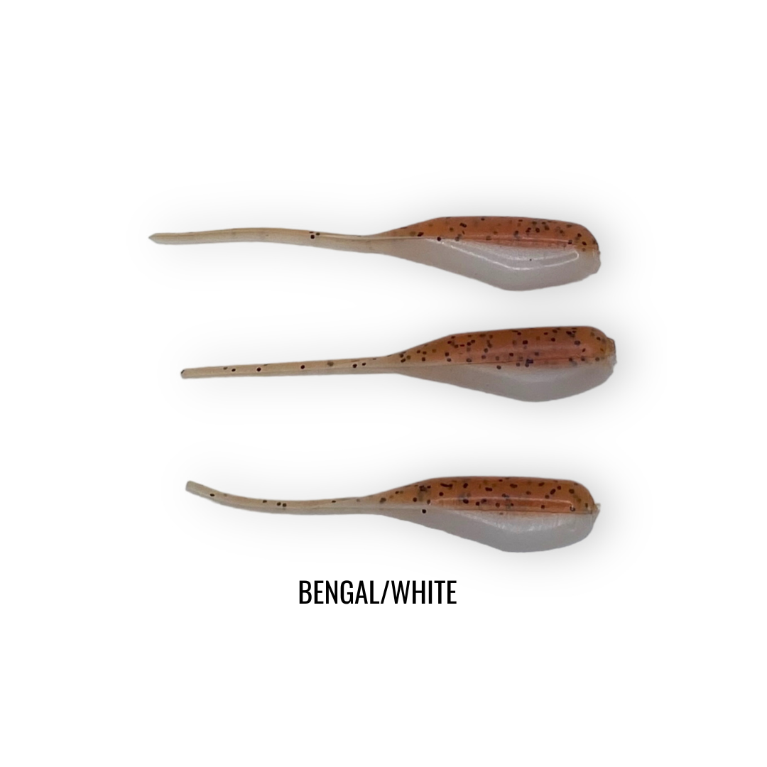 Our soft plastic crappie baits are durable and effective. This minnow jig features a deep belly profile and a thin dancing tail with lifelike action. Order some and bring home a slab!