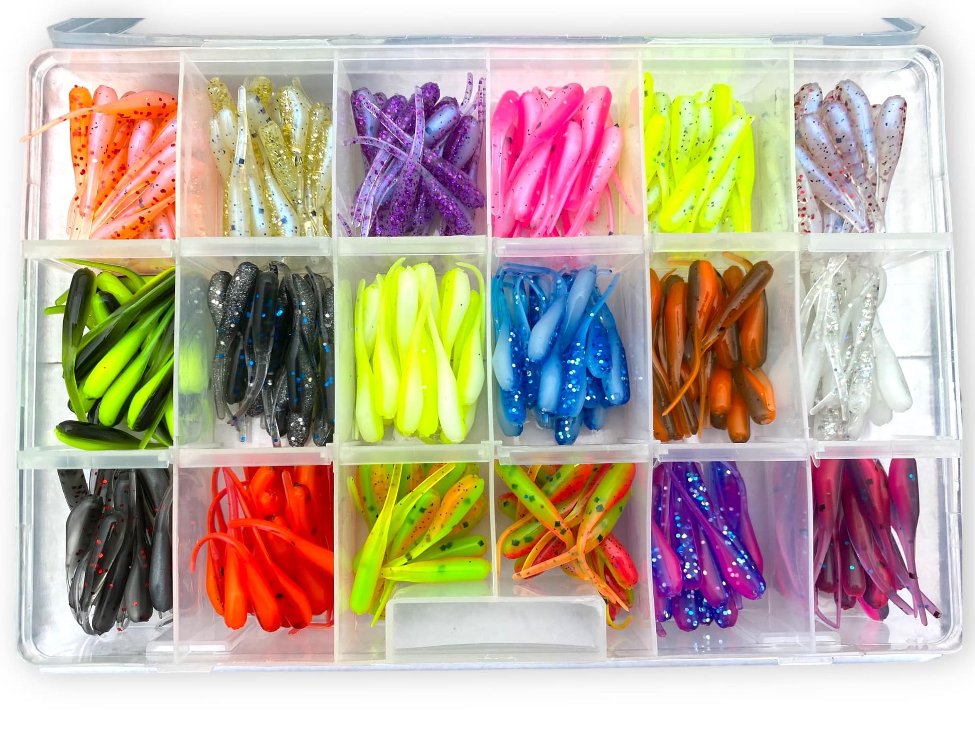 20 2" crappie jigs in 18 different colors