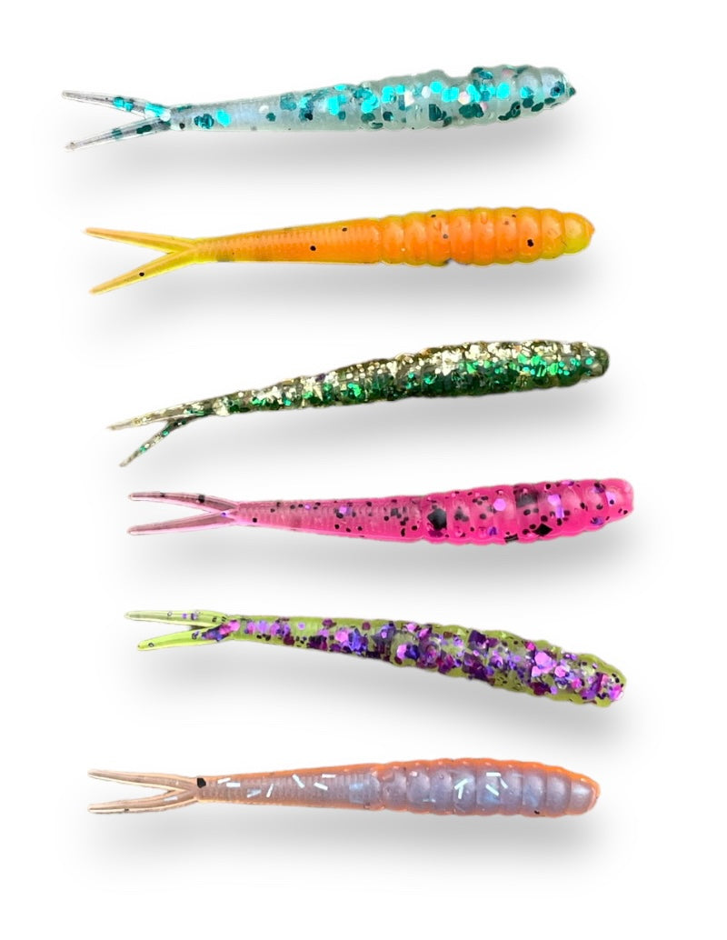 Want to try multiple colors of our flukes but don’t want to commit to a 10 pack of one color? Try out a grab bag and find what variant works best for you!
